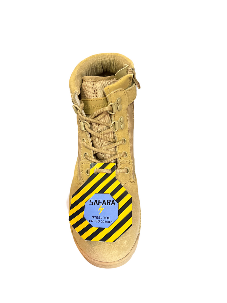 Safara NJ6611 Khaki Leather/Nylon 8” Side-zip Steel-toe Workboot