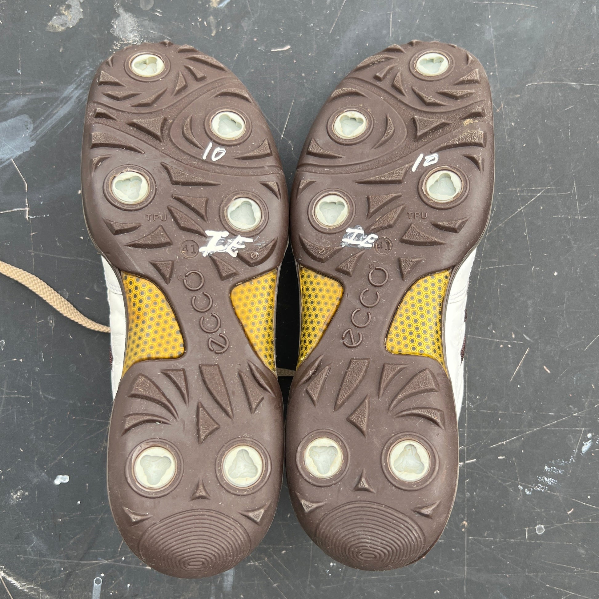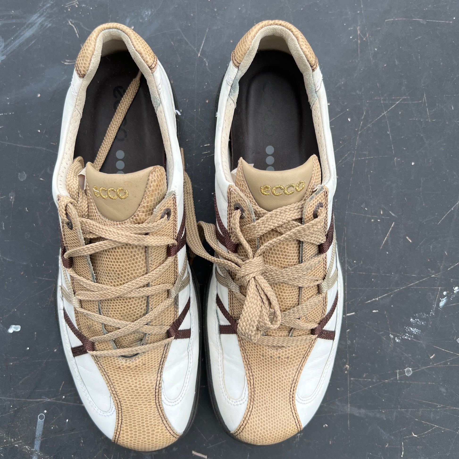 Women’s Ecco Spiked Golf Shoe 41EU White/Tan Embossed Reptile Leather