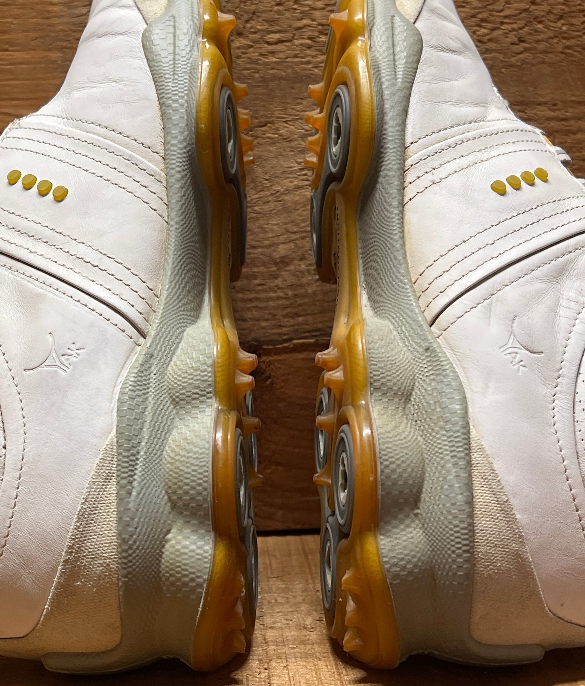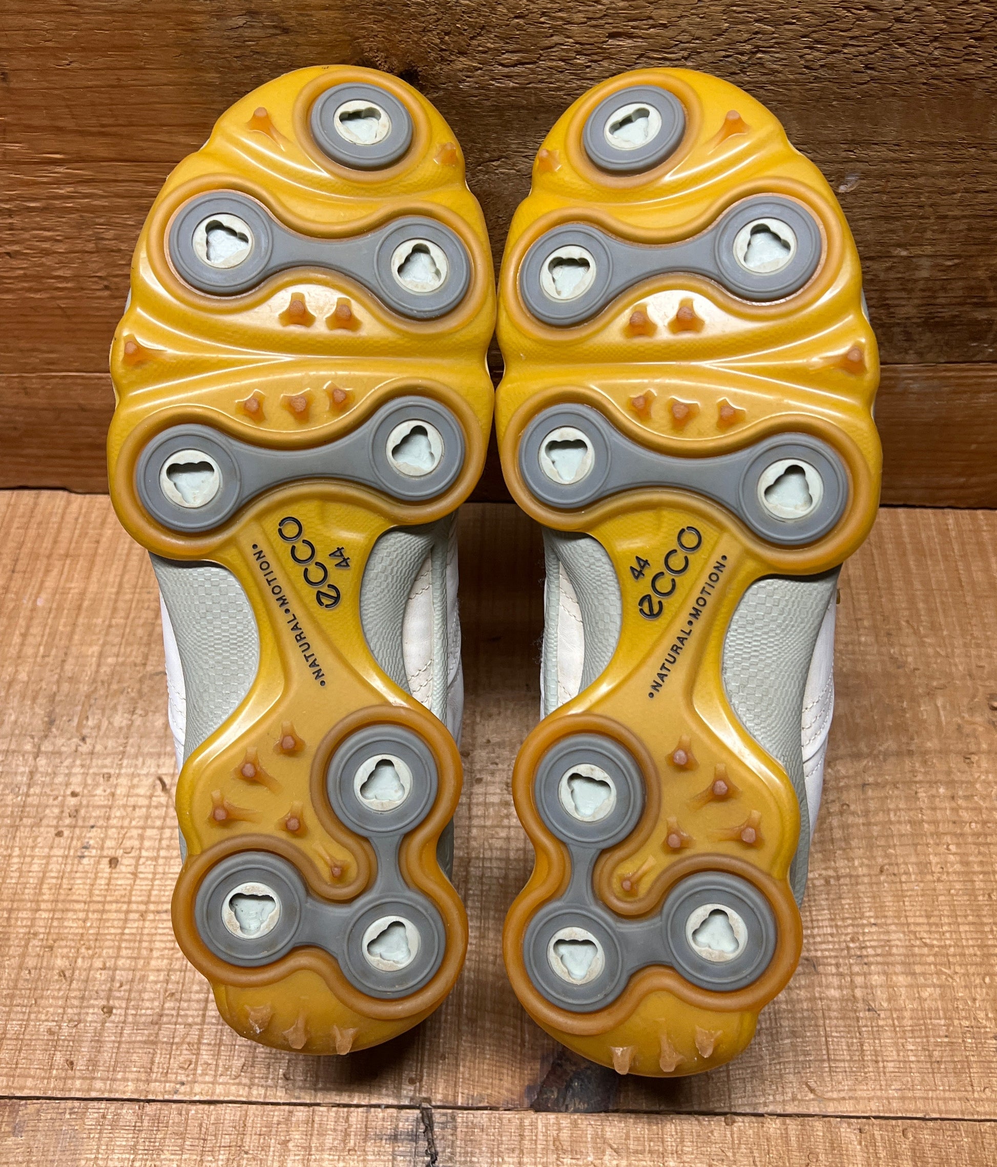 Men’s Ecco Biom Cleated Golf Shoe 44EU •White/Grey/Citron• Hydromax Yak Leather