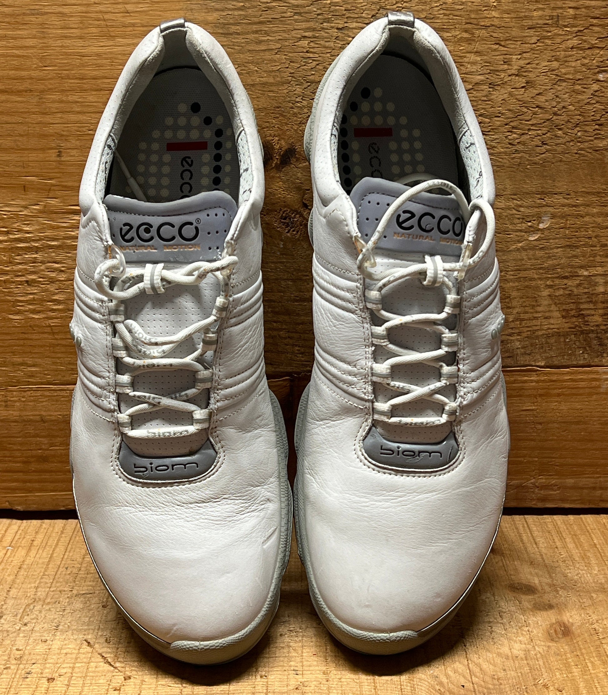 Men’s Ecco Biom Cleated Golf Shoe 46EU •White/Grey• Hydromax Yak Leather