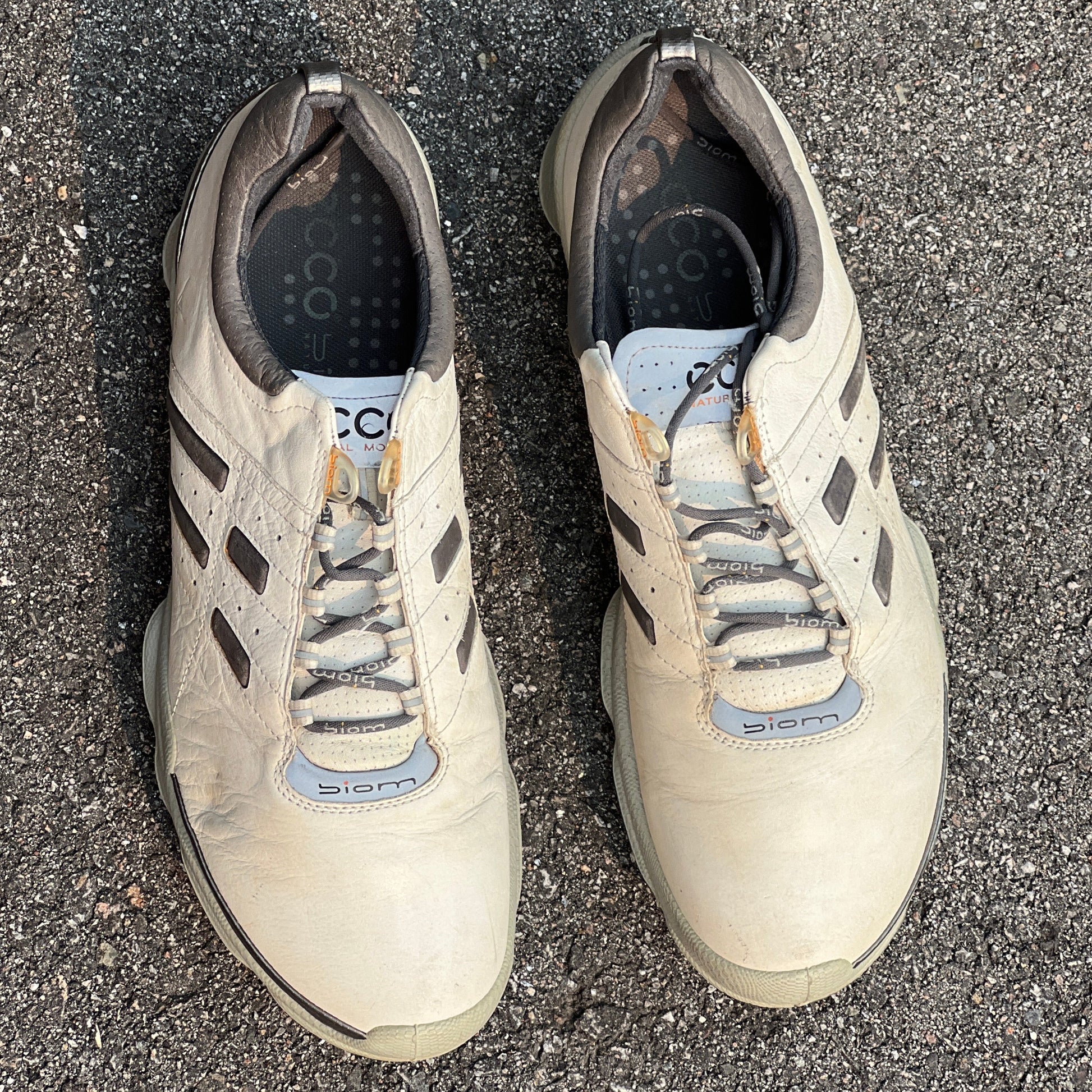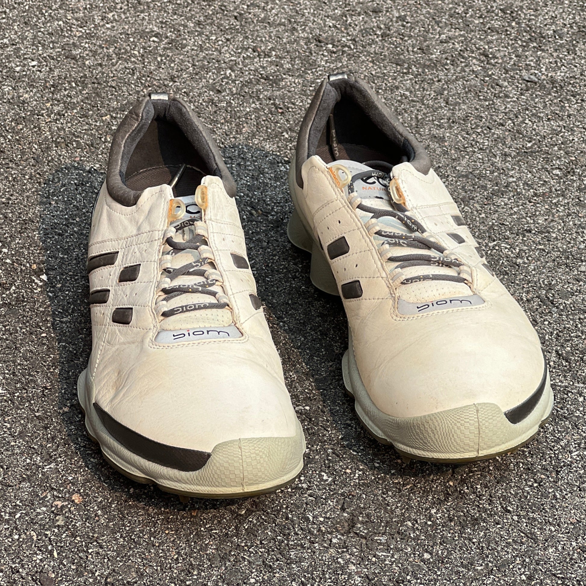Men’s Ecco Biom Cleated Golf Shoe 45EU •White/Red• Hydromax Yak Leather