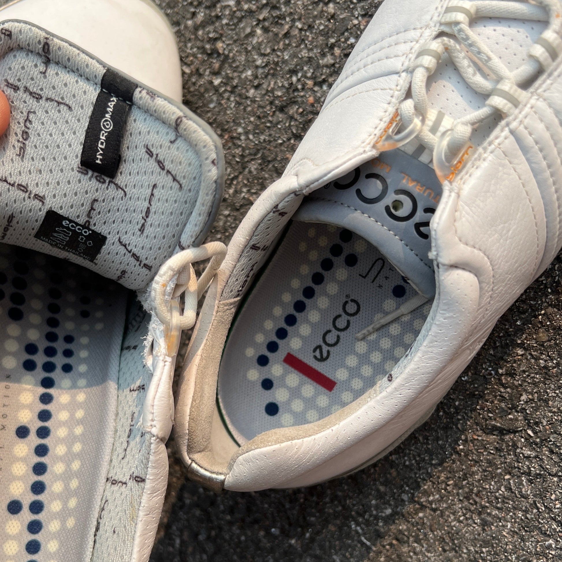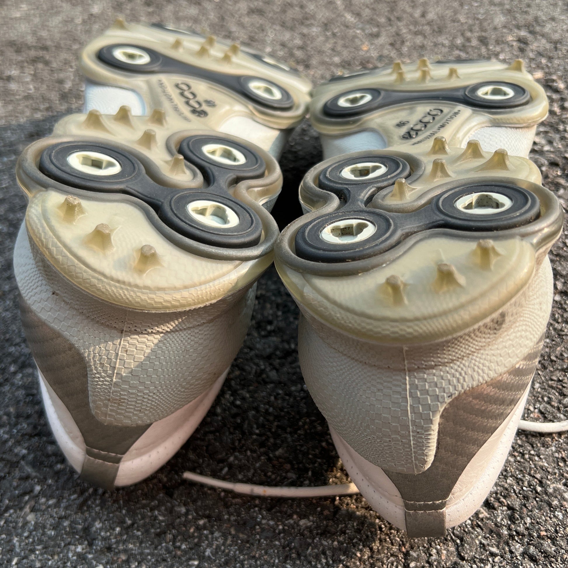 Preowned Men’s Ecco Golf Shoes come with cleats