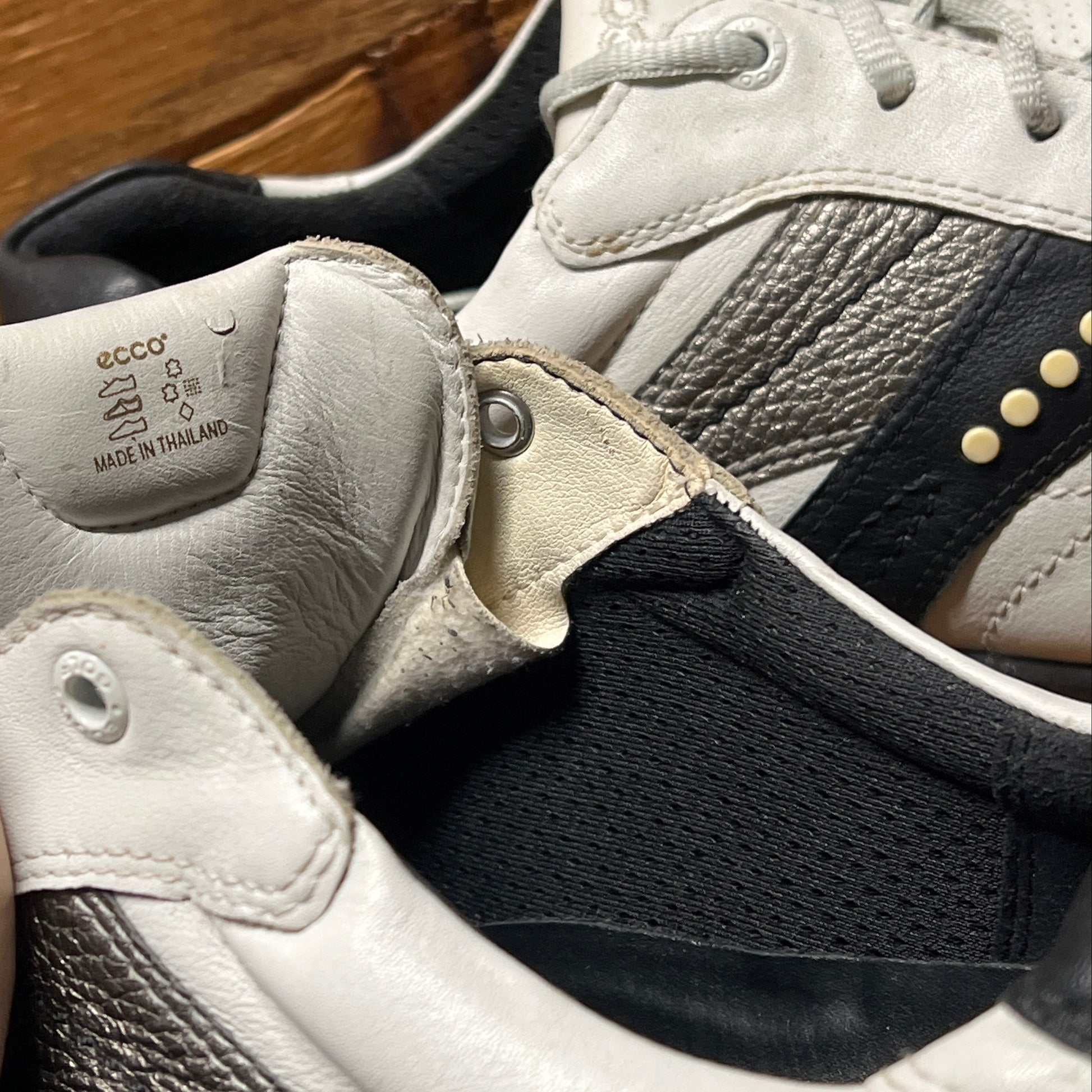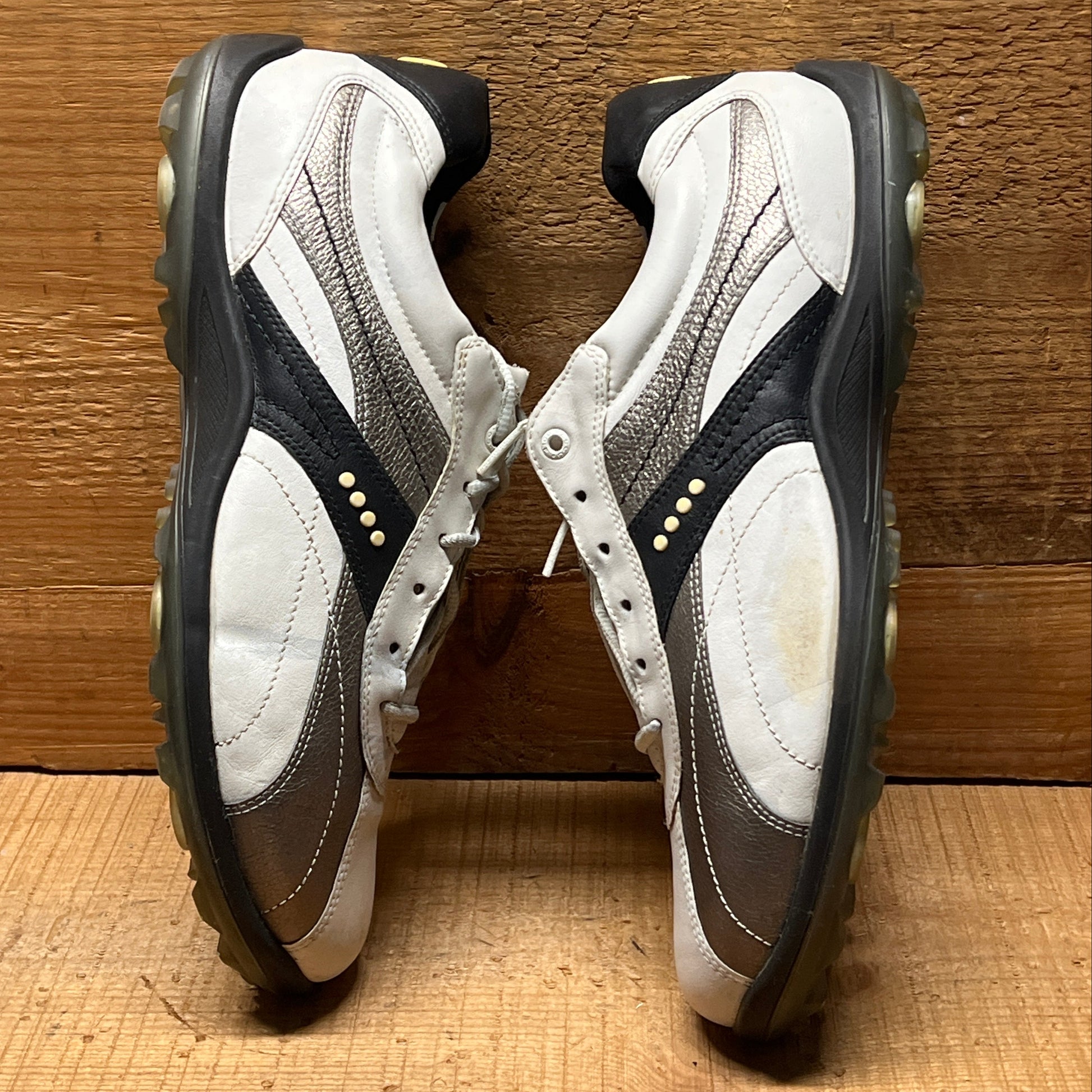 Men’s Ecco Hydomax Cleated Golf Shoe • White/Black Leather • Size 46