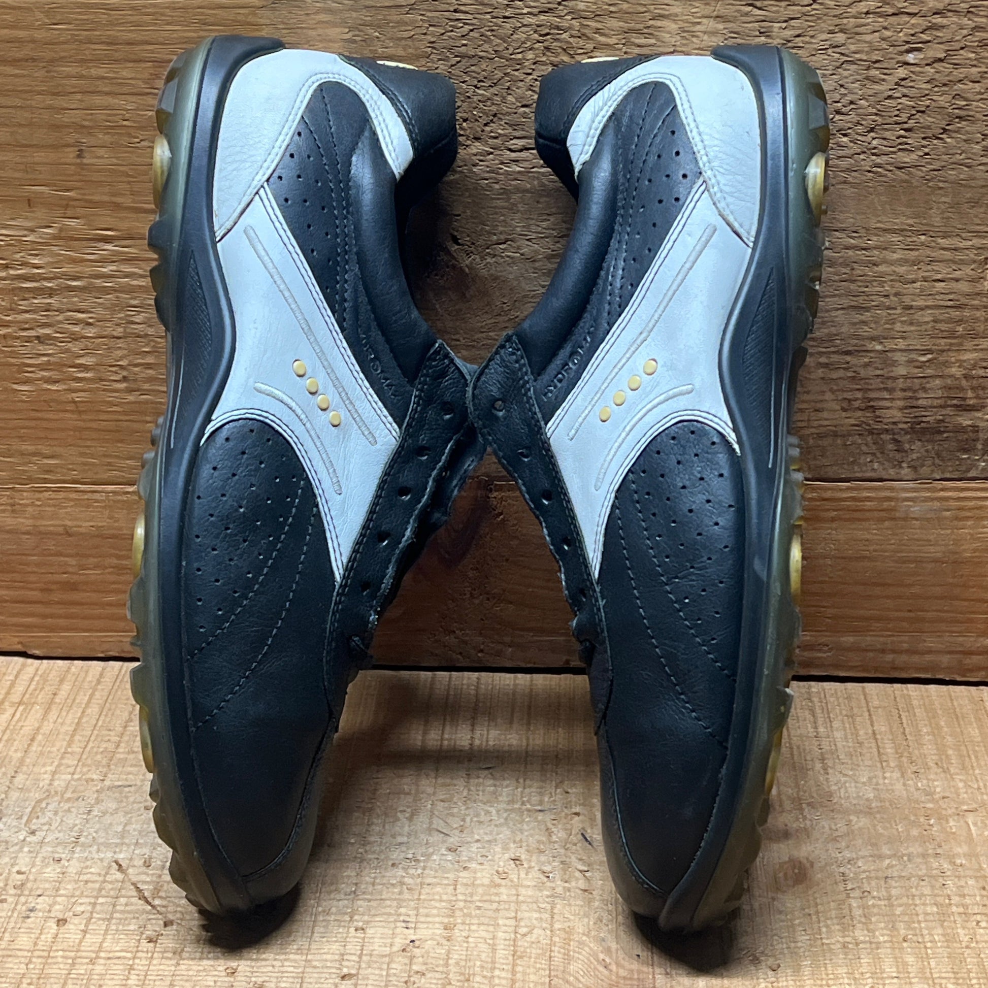 Men’s Ecco Hydomax Cleated Golf Shoe • Black/White Leather • Size 44