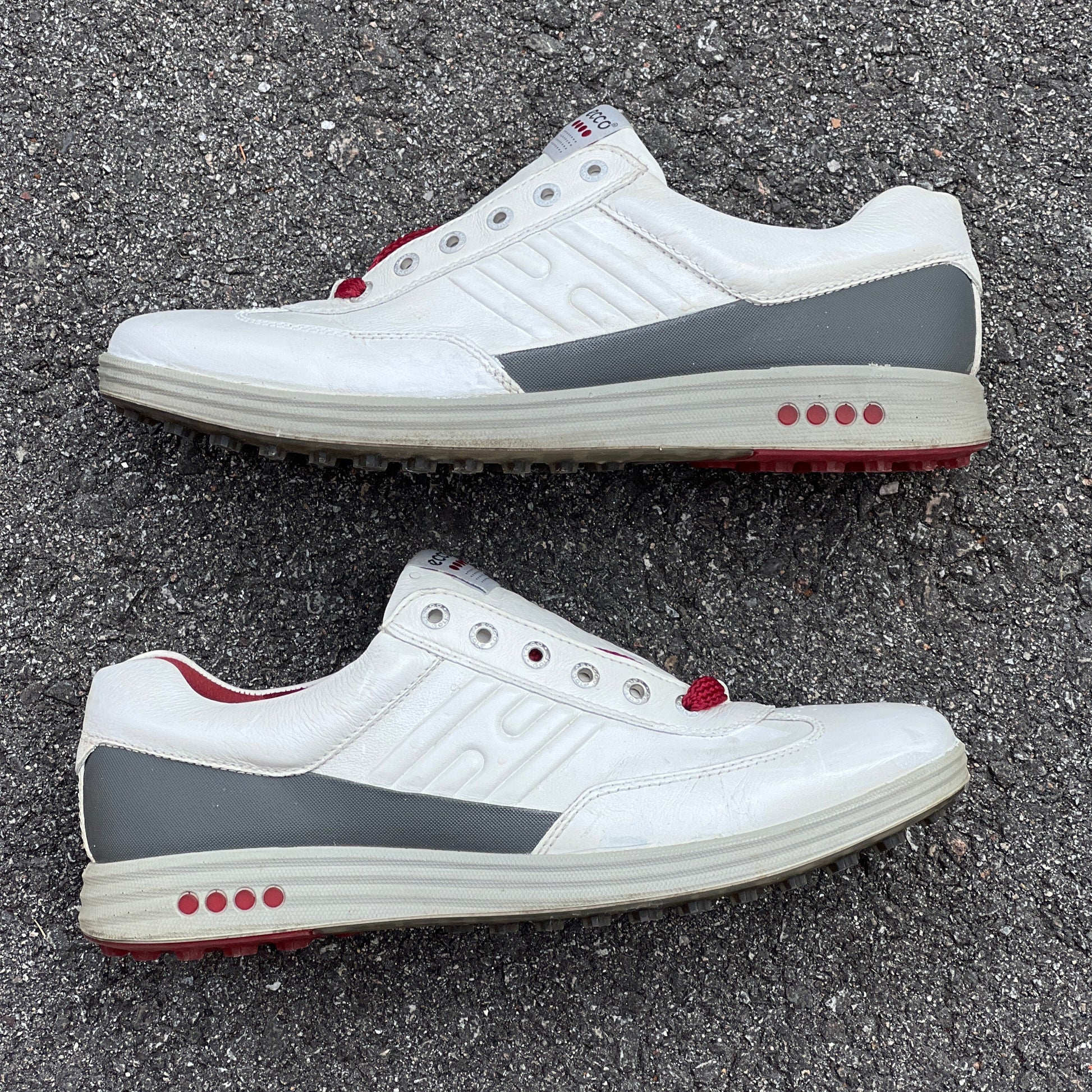 Men’s Ecco Premier Cleat-less Golf Shoe 45EU •White/ Grey• Hydromax Leather