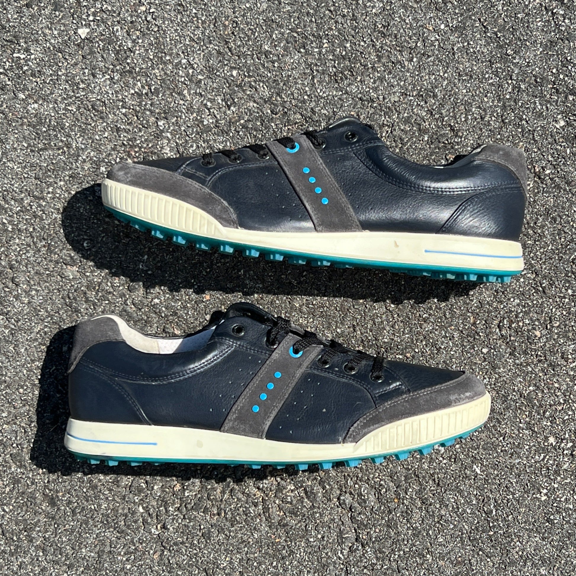 Men’s Ecco Street Cleat-less Golf Shoe 45EU • Black/Blue • Leather