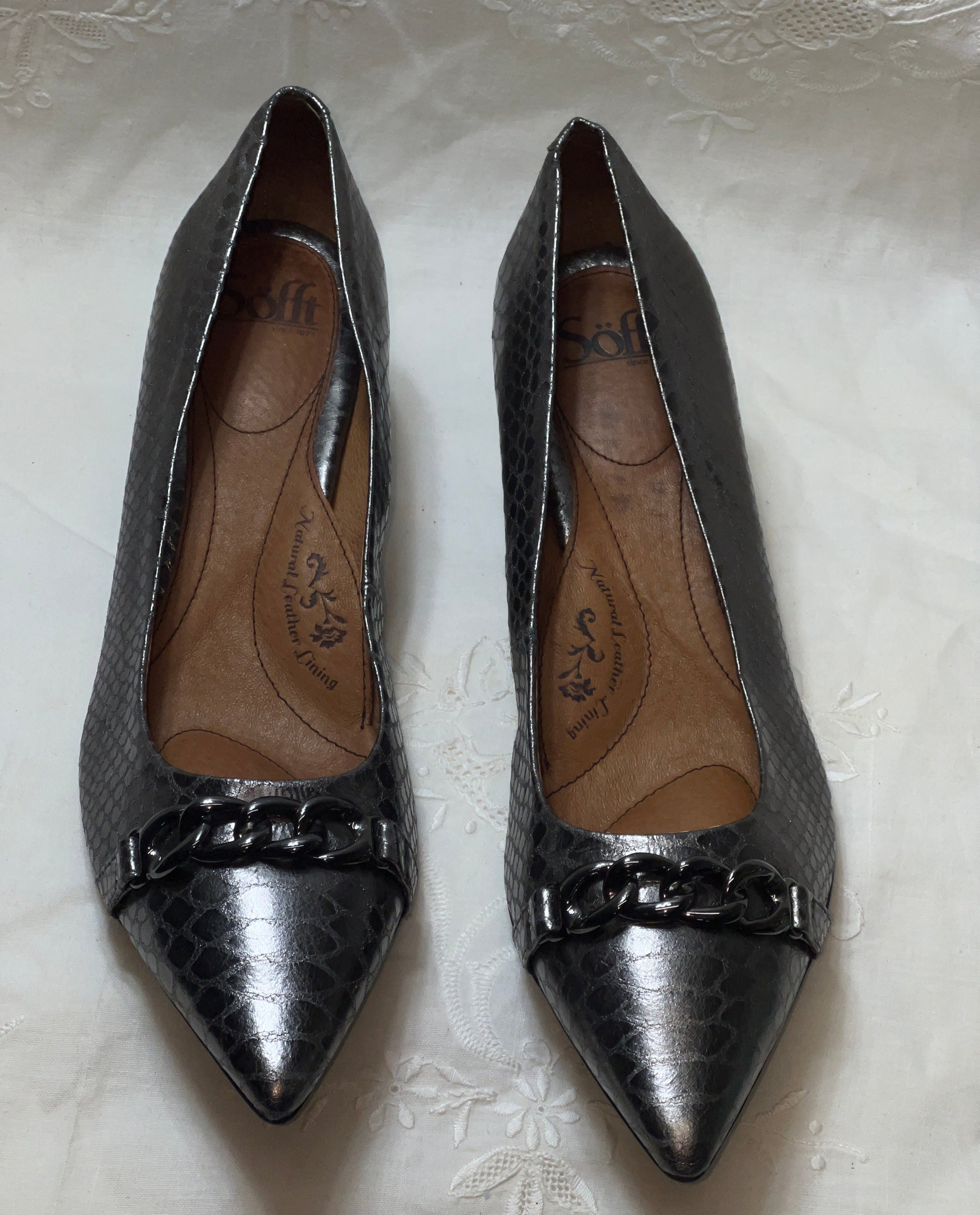 SOFFT Women's Pointed-toe Embossed Snakeskin Metallic Leather Wedge 11M