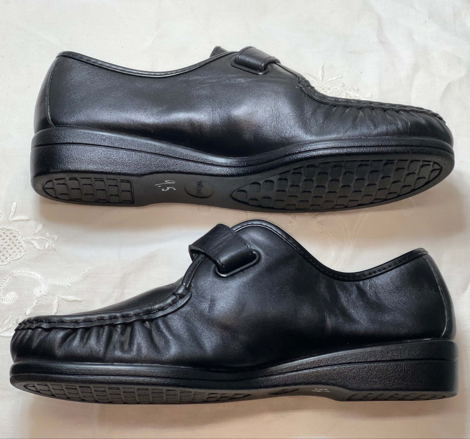 SOFTSPOTS Women's •Angie• Moc-Toe Hook & Loop-Strap Comfort Shoes 9.5M Black Leather