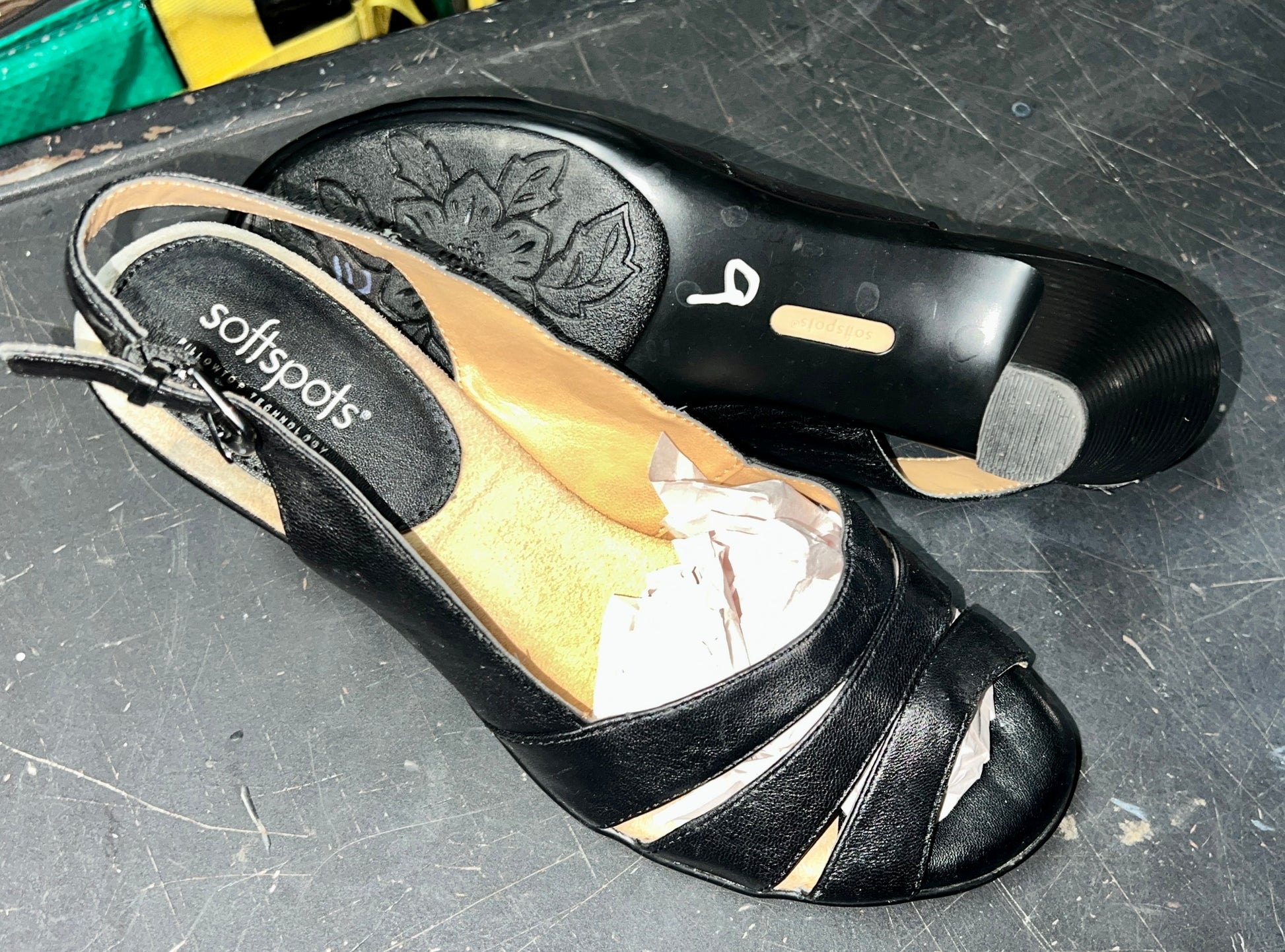 Softspots Women's •Neima• Sling-back Heel 9M Black Leather