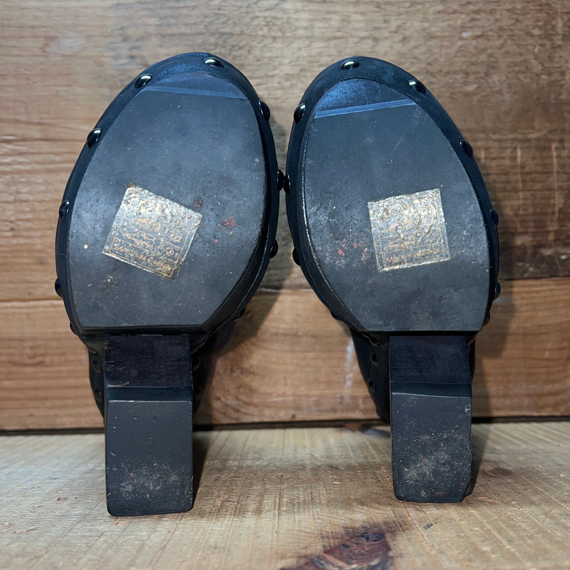 Shoes are pre-owned in good condition, But are missing a stud/nail-head on the rear of the left heel