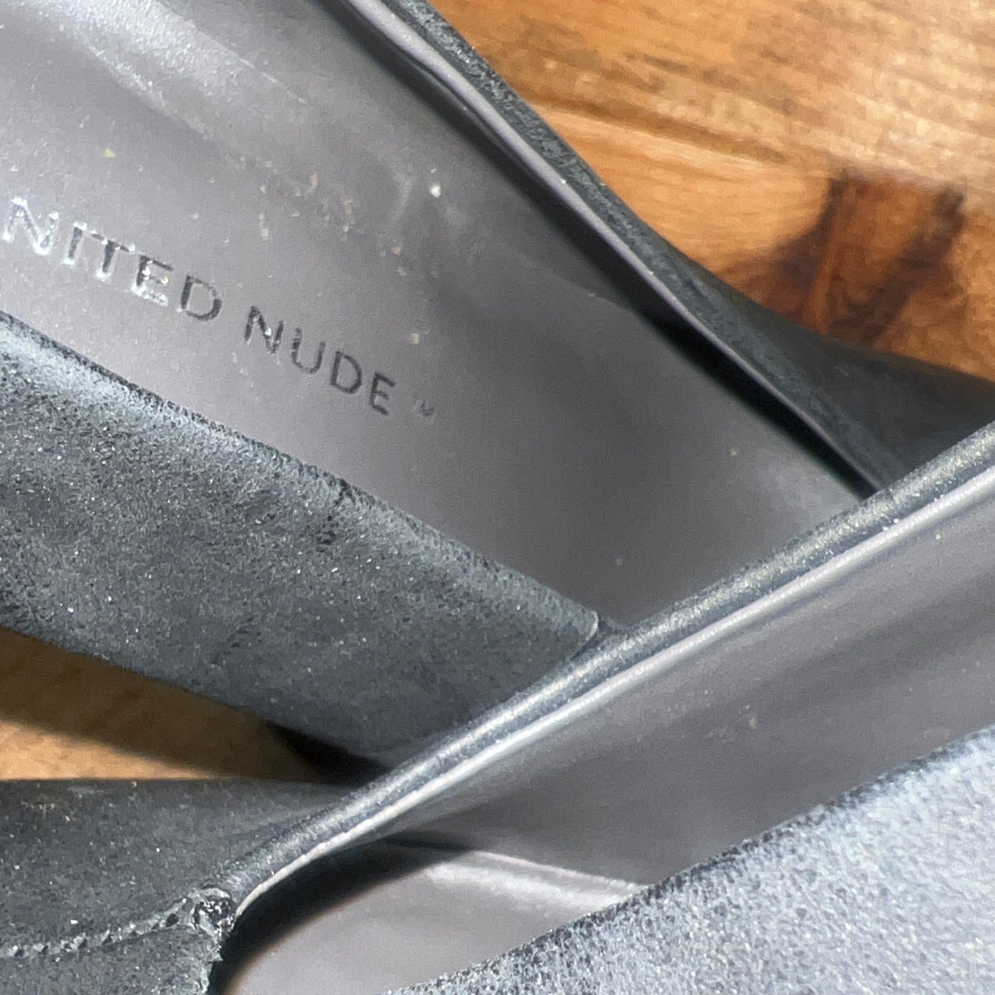 UNITED NUDE Women's Abstract Rustic Wood Platform High Heel 37 Black Leather
