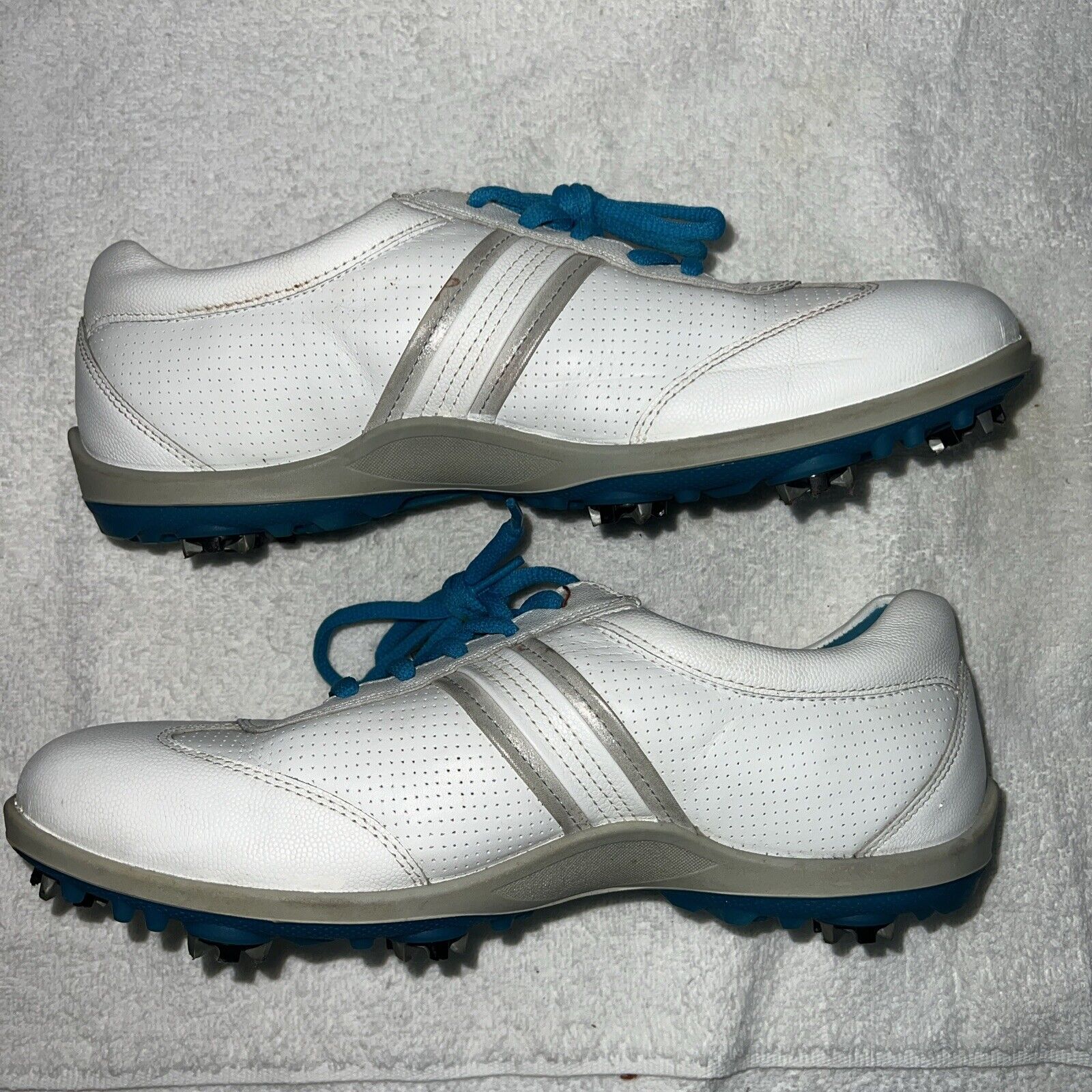 Women’s Ecco Spiked Golf Shoe 41EU White/Blue Hydromax Leather