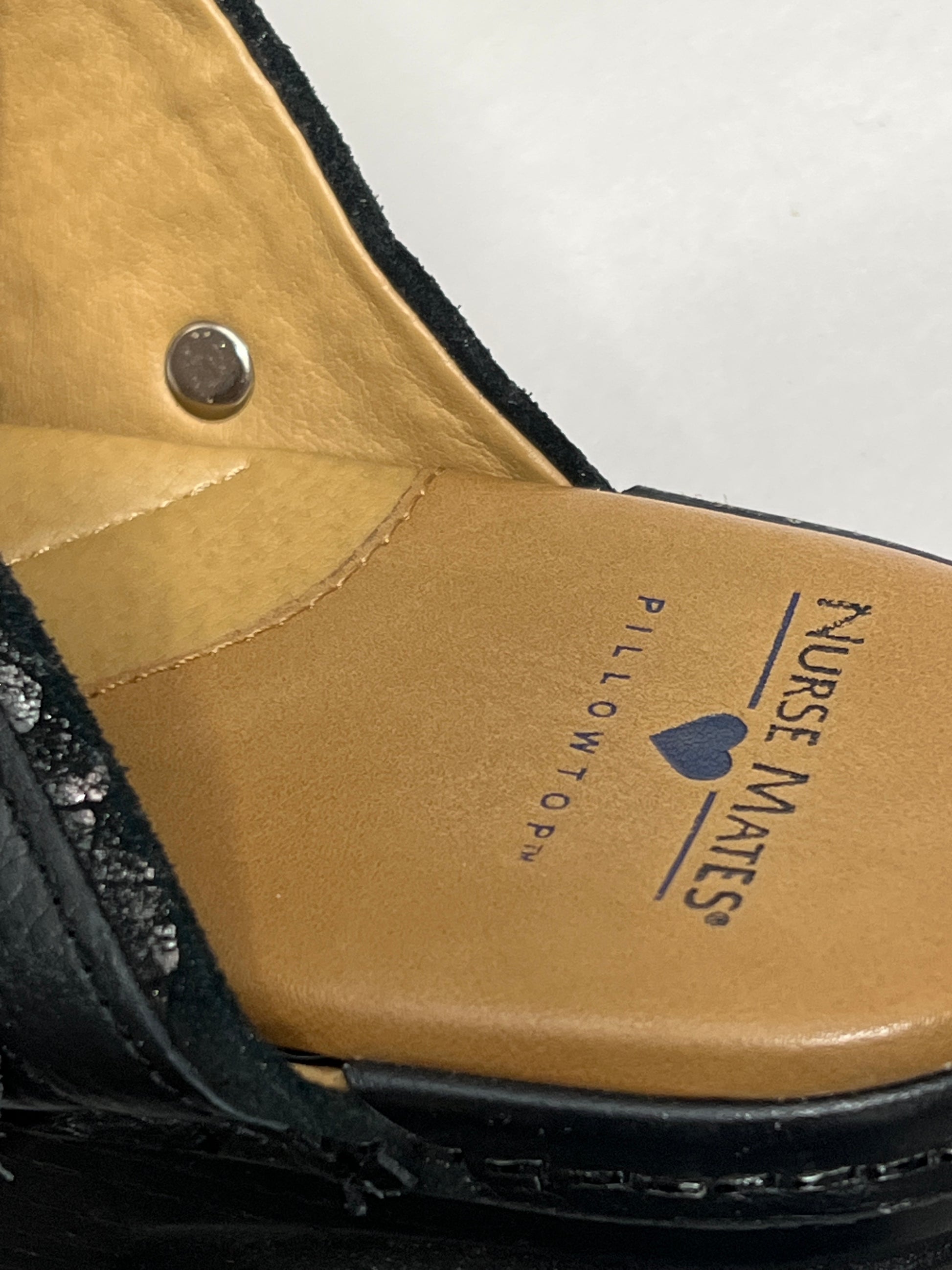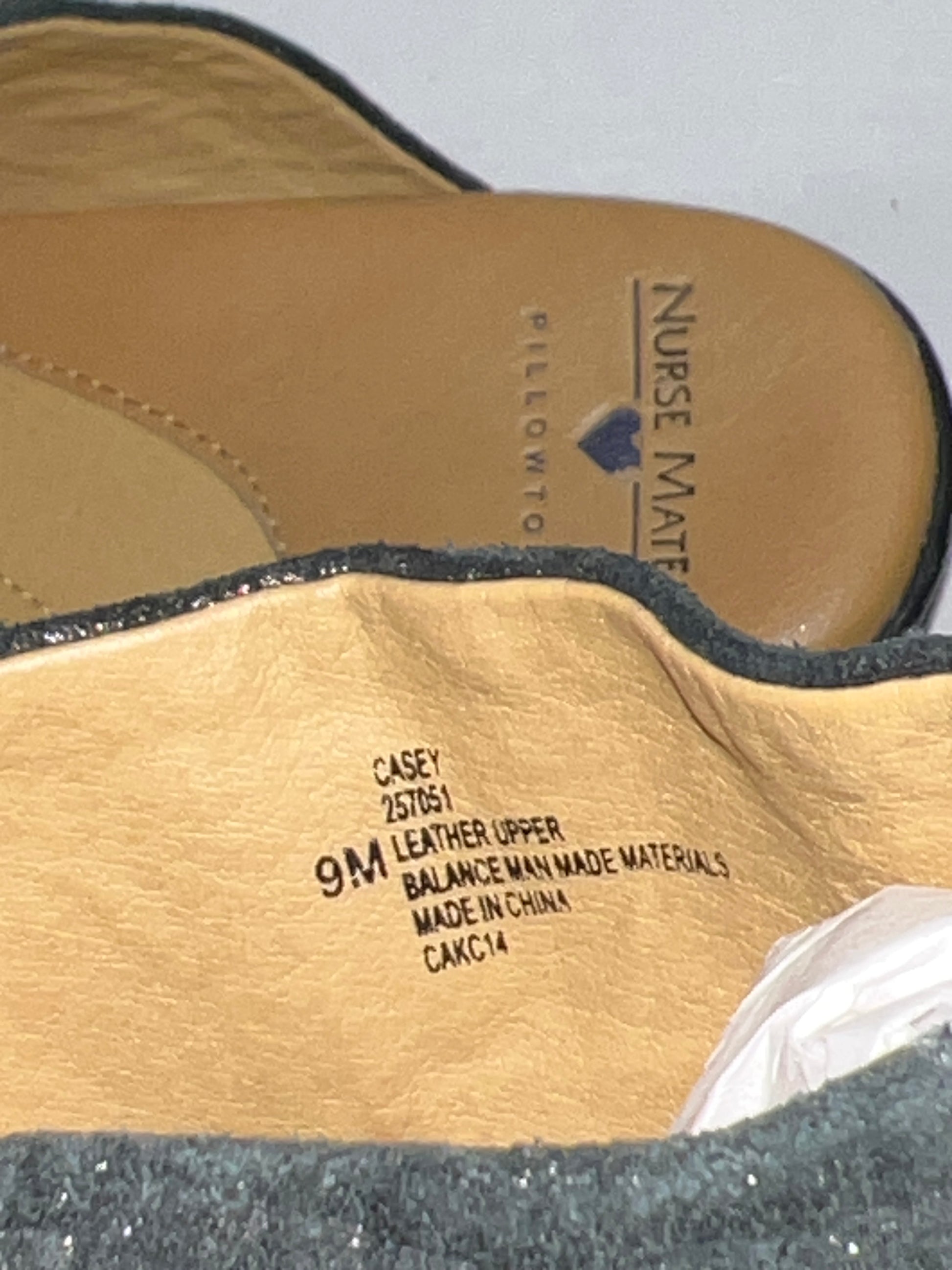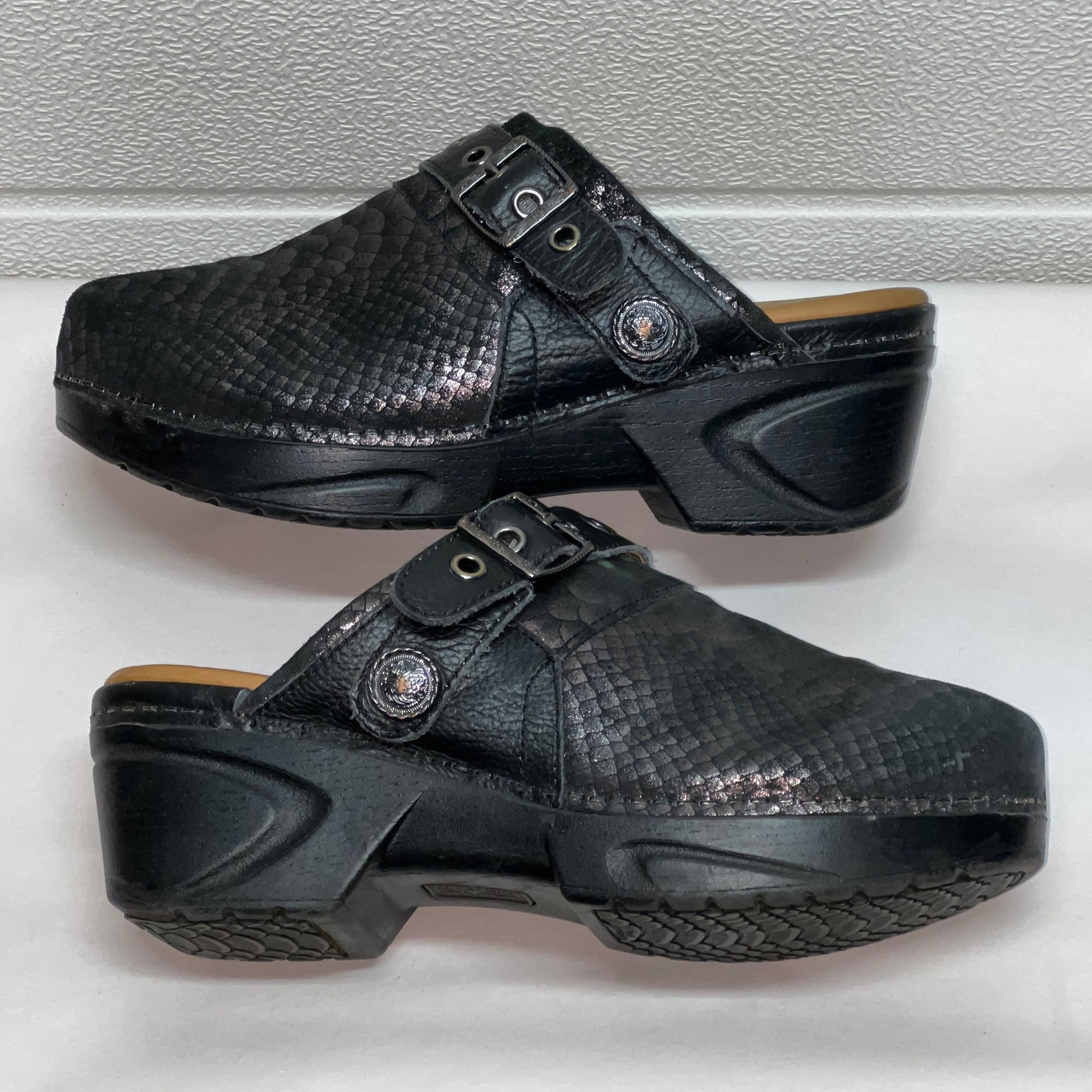 Women’s Nurse Mates Casey Pillow-top Open-back Clog 9M Black Printed Silver Scaled Leather