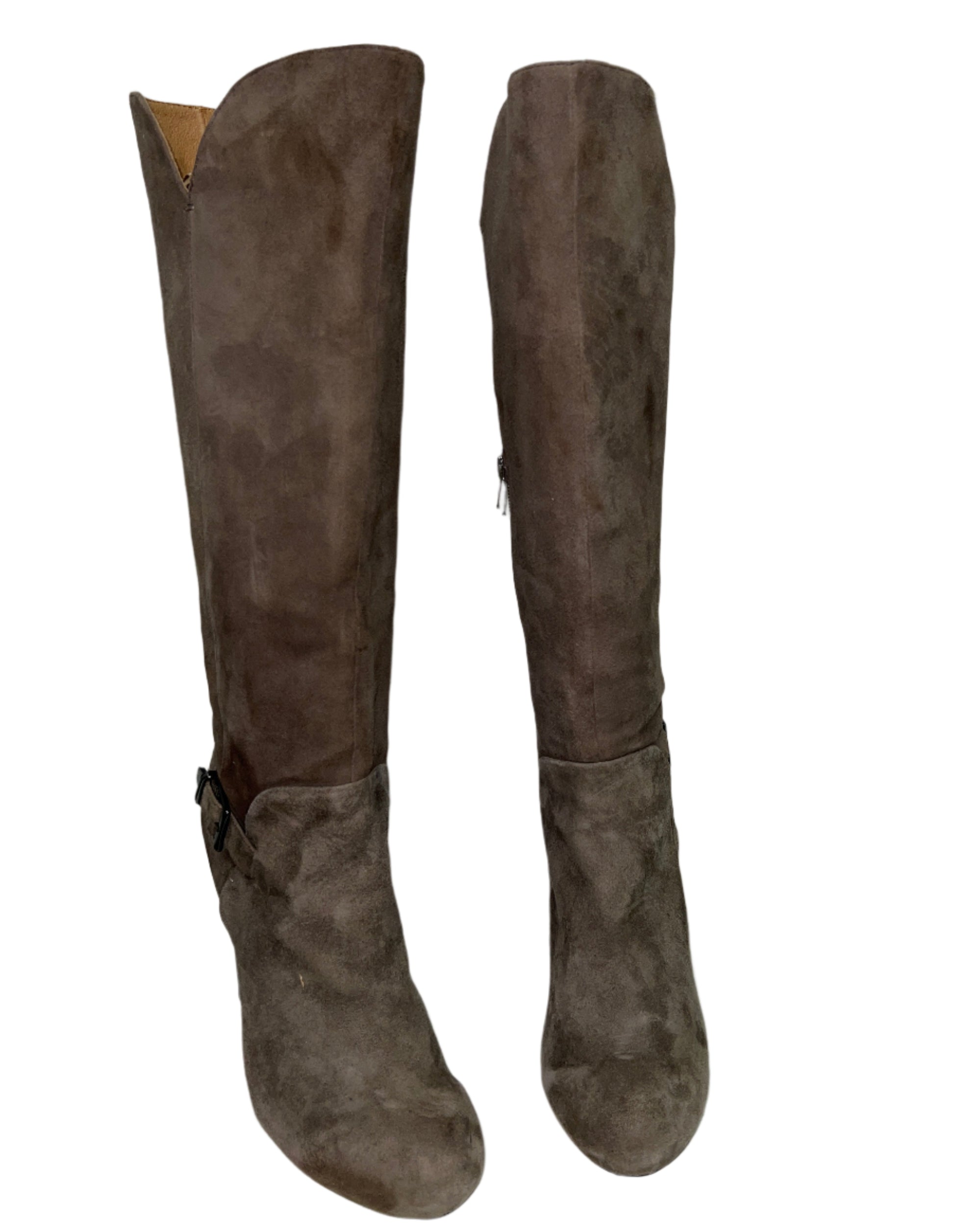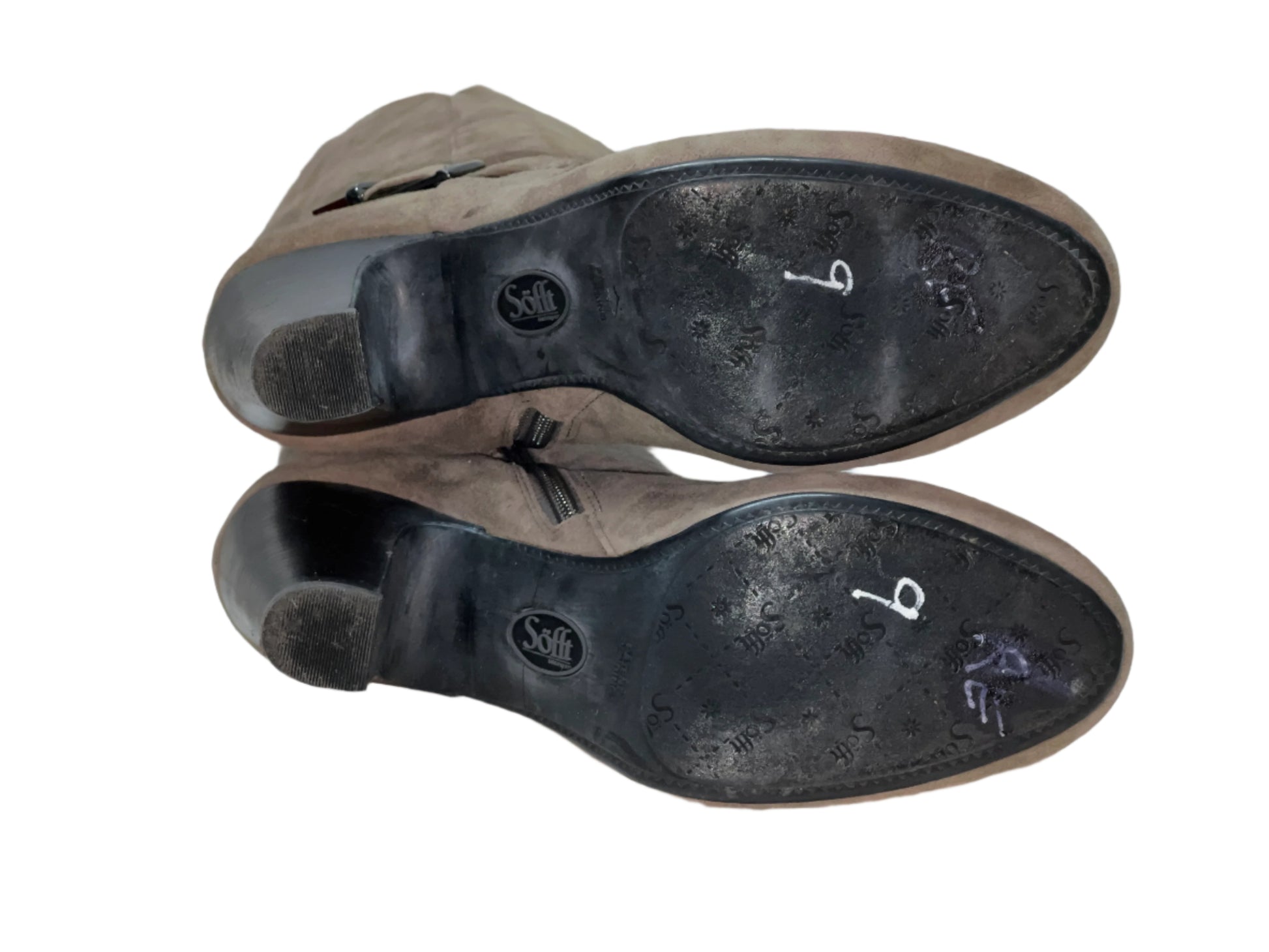 Women’s Sofft High-heeled Almond Toe Tall Boot 9M Taupe Kid Suede